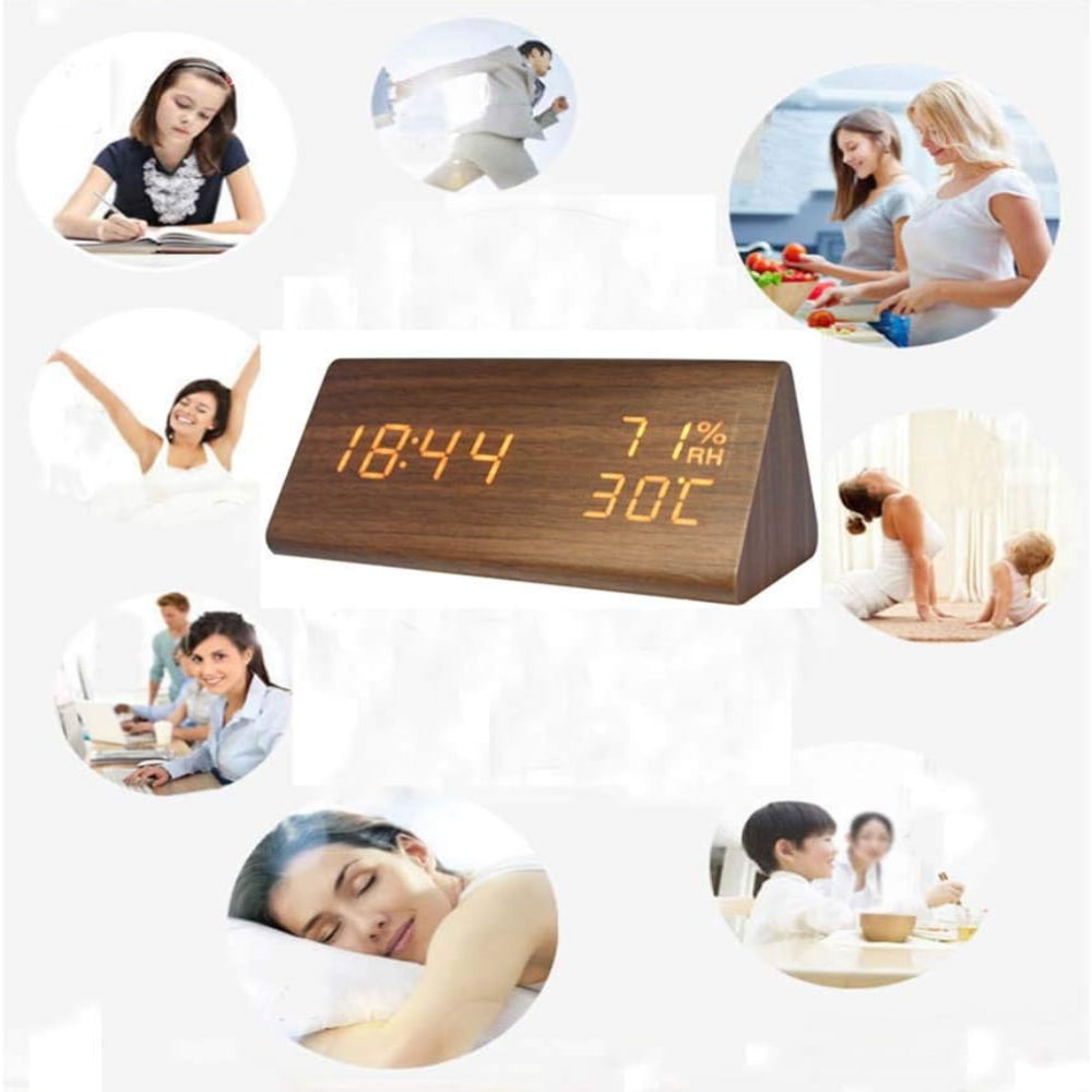 Combinando estética natural y tecnología, este reloj muestra la hora con elegancia gracias a sus discretos LED. Su práctico control por voz y su brillo ajustable lo convierten en un accesorio moderno, ideal para realzar tu interior.